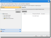 The Local Authorization dialog is displayed. - The policy must be assigned to at least one endpoint or endpoint group. Assign the policy to endpoints: