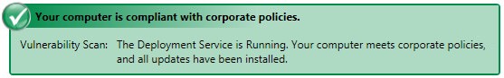 Your computer is compliant with corporate policies The deployment service is running. Your computer meets corporate policies, and all updates are installed on your computer. |