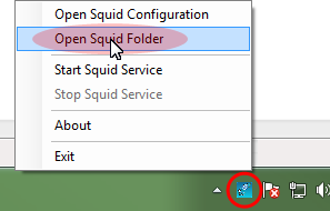 Open the Squid Folder using the Squid system tray icon right-click menu.