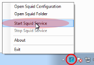 Stop the proxy server using the Squid system tray icon right-click menu.