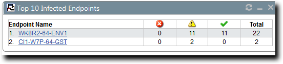 This widget displays all endpoints with unapplied applicable content updates, grouped by content type. View this widget when determining if an endpoint requires deployment.