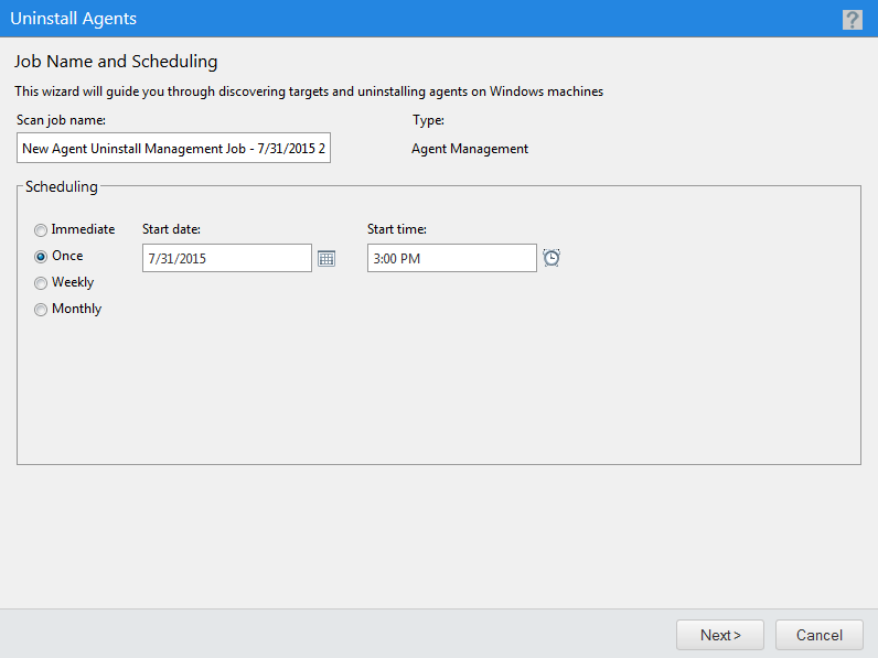 Configuration of the Agent Management Job is similar to configuration of a Discovery Scan Job.