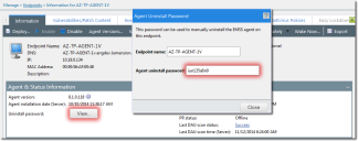 Tip: You can find the uninstall password by navigating to the agent's Endpoint Details page in the Ivanti Endpoint Security console.![]()