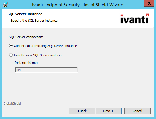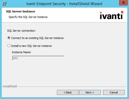 Installing Ivanti Endpoint Security using an existing remote SQL Server instance differs slightly when no SQL Server instance exists locally.