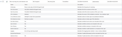Now you can view all the Real-time Monitoring and Recurring Virus and Malware Scan policies configured in the system. Refine the list by using the filters provided or expand a row to see detailed policy information.