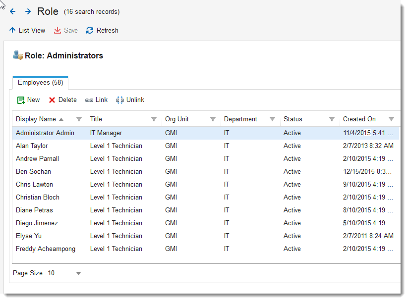 The system assigned at least one role to all Service Manager users of the type employee. Users can have multiple roles. The system uses roles to define responsibilities for the users as they work within the application.