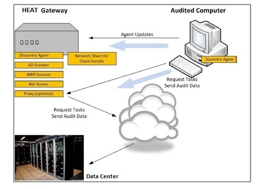 •If it is not feasible to install a client agent on a networked computer, you can remotely audit the machine by using Microsoft WMI infrastructure (Windows Management Instrumentation), which allows the gateway to audit computers remotely. Agentless auditing is done by a gateway machine running WMI queries against the target computers. See Running an Agentless Audit.