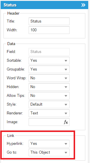 Renderer A rendering option.  For example, you can render the column as an option to be checked, or as a Yes/No option. These options are different for each field type. See Field Renderer Options.