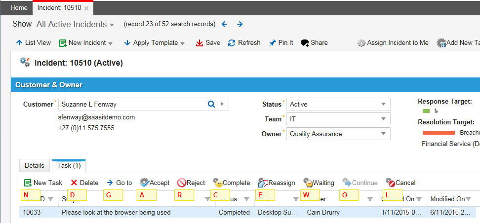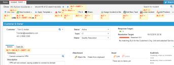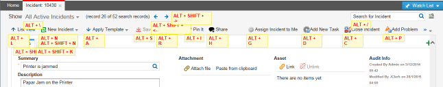 However, if you are in a child panel that is not read-only, which means you can enter data into the form, as shown below, you must use a modifier. Below, if you click  Alt+N, the application opens the New Problem window. You cannot access the New Incident form from here.