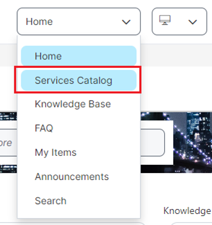 3.Select the Service Catalog page from the Page Selector drop-down list.