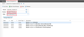 Navigate to the Feature Management Business Object in the Config DB and search for your tenant feature.