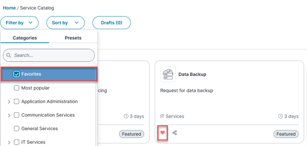 You can also use Favorites as a filter in your Service Catalog as a Self Service user.