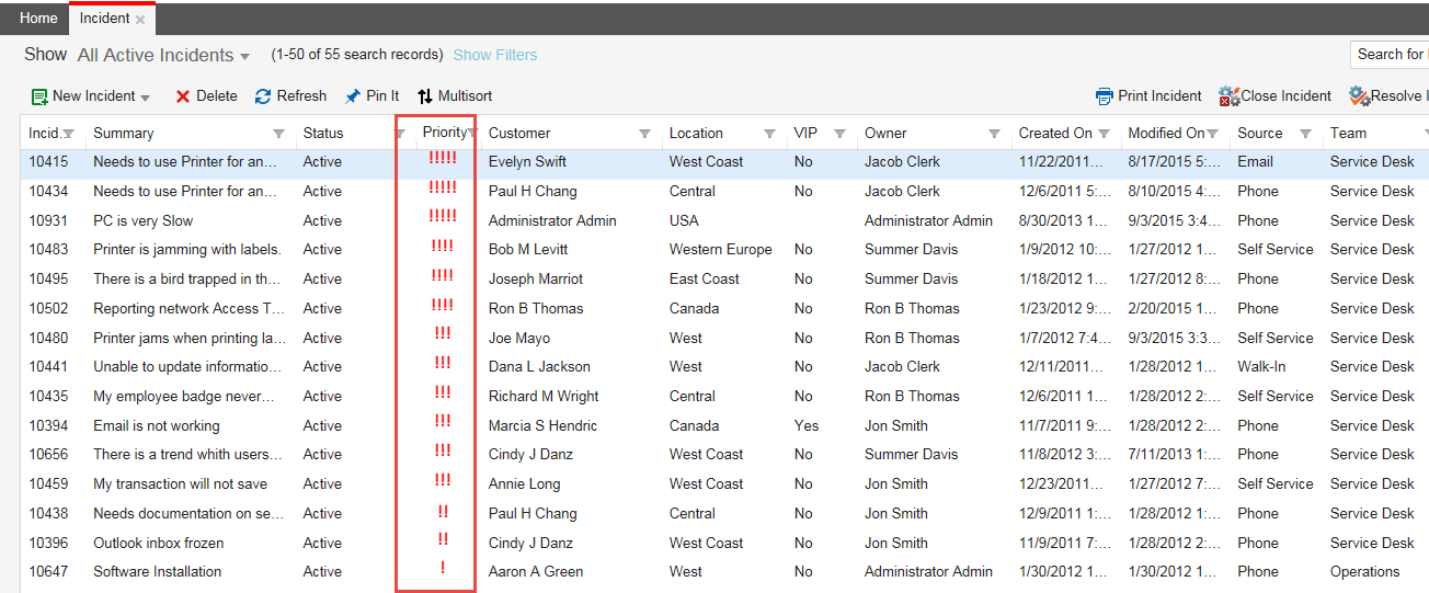 In this example, the numbers (1, 2, 3, 4, and 5) in the Priority column (see figure below) are replaced by the following new icons: ![]()