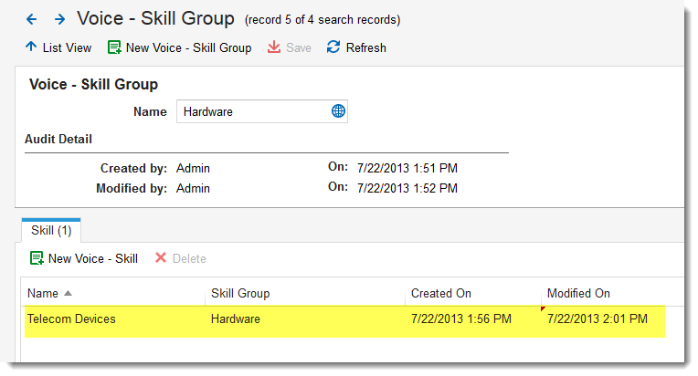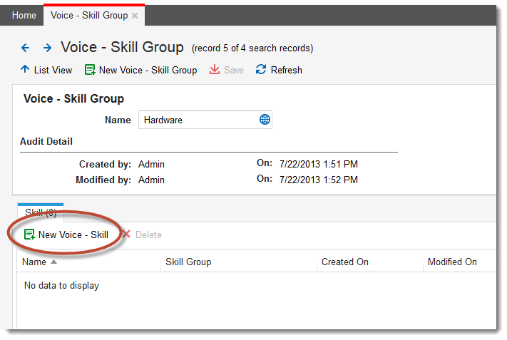 3.Click New Voice - Skill Group. The Skill Group page appears.