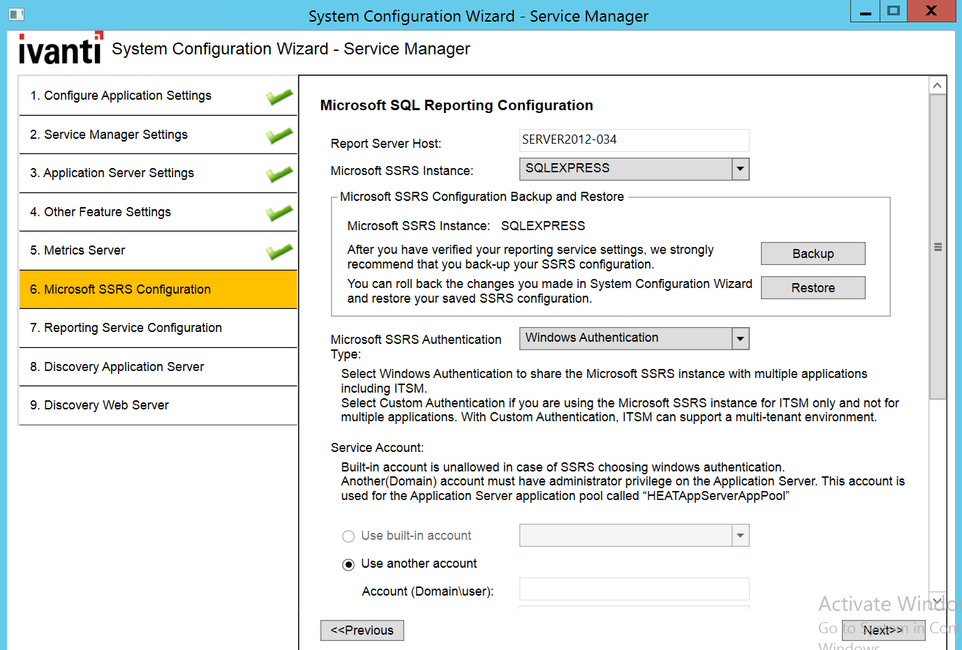 If you select a Microsoft SSRS instance  and select Custom Authentication, the System Configuration Wizard overwrites the existing Microsoft SSRS configuration.
