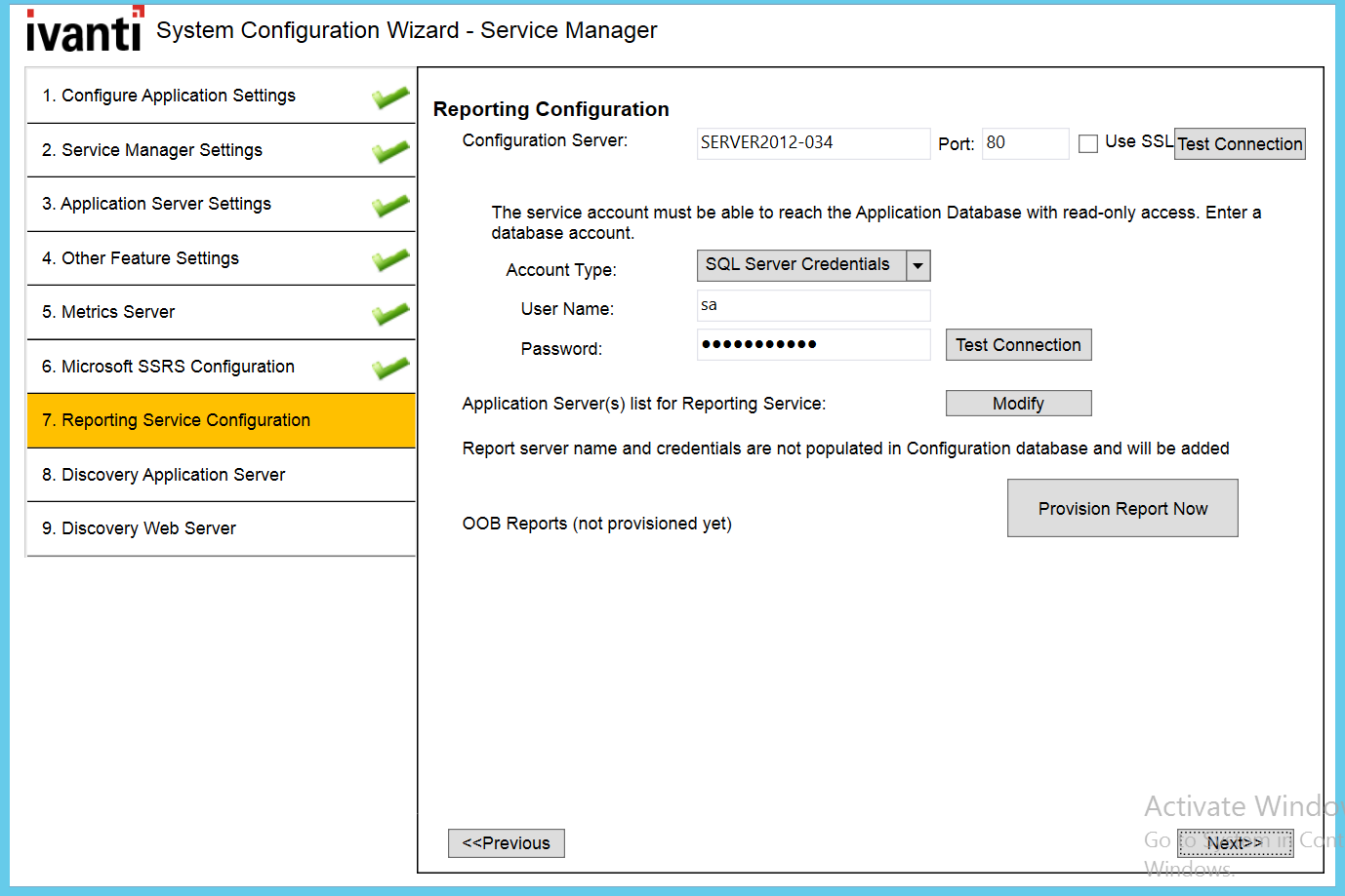 8.When you see confirmation that the out-of-the-box reports have been provisioned, that is, the last line of this step changes from OOB Reports (not provisioned yet) to OOB Reports (provisioned on date), click Finish to close the System Configuration Wizard.