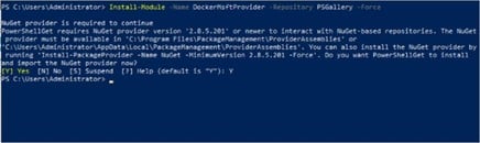 Install-Module -Name DockerMsftProvider -Repository PSGallery -Force