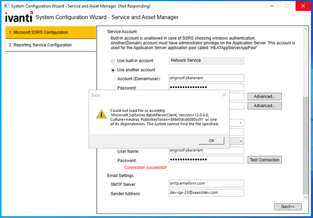 2.Start the SSRS and provide correct configuration details.