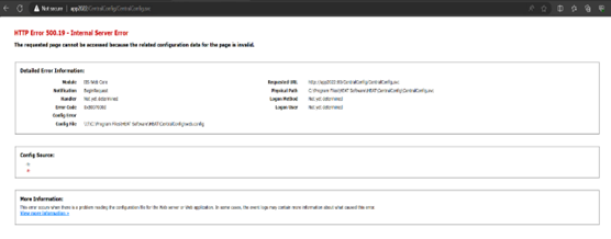 5.If the CentralConfig is URL not accessible – install the IIS Hosting bundle and the Restart IIS.