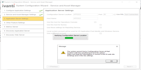 From the System Configuration Wizard (SCW) - unable to connect to Central CentralConfig URL configuration.