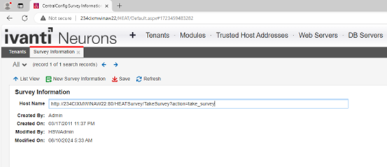 Open the Survey Information workspace from Config tenant.