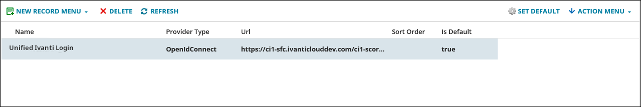 To verify that OIDC is set up, open the Configuration console, and select Security Controls > Authentication Providers. You should see an entry similar to this: