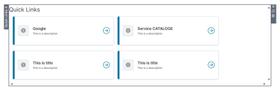 Use Quick Links to display useful links to Business Objects, workspaces or web pages. Quick Links can be displayed in your page design as lists, tiles, or a carousel.