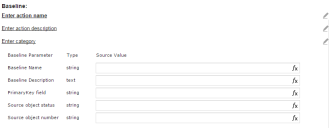 The Baseline action sets a standard baseline parameter value for configuration items that are associated with a change. For example, you can set the RAM for the production server to 4 GB.