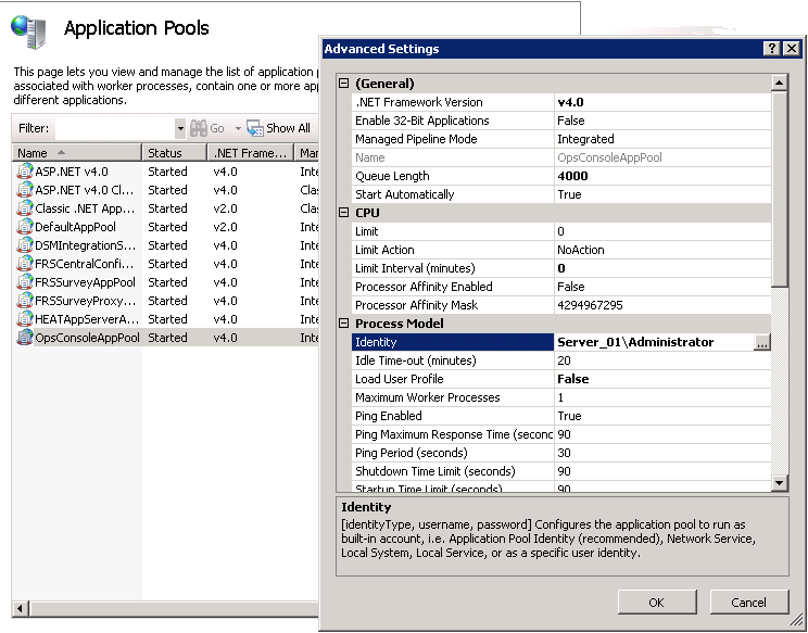 | e. | For the data and backup locations, change the application pool identity so that it has read access. See Changing the Application Pool Identity. |