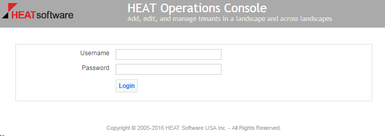 Operations Console Log In Screen