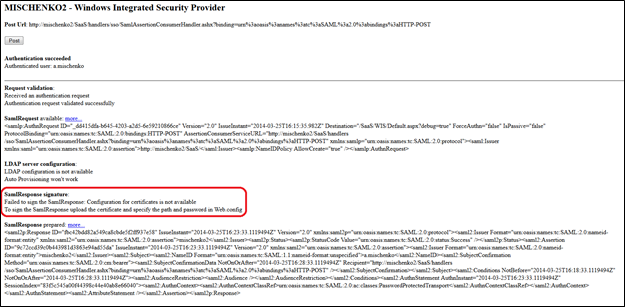 4.Windows Integrated Security signs the SAML response with the certificate specified in the web.config file.