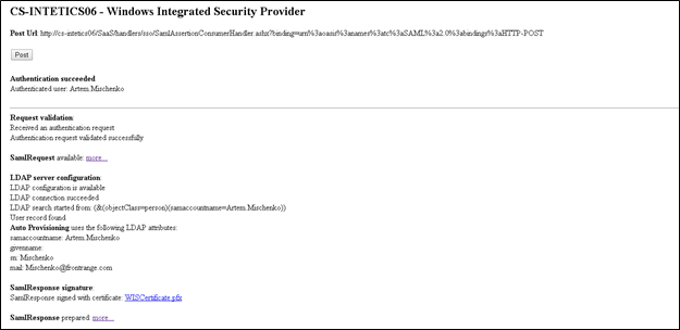 5.Windows Integrated Security enables auto provisioning in the SAML response using LDAP configuration from the web.config file.