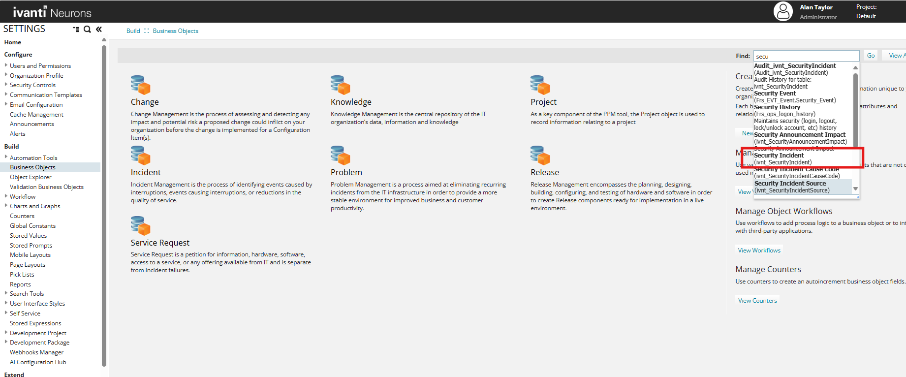 1. Go to Build > Business Objects.