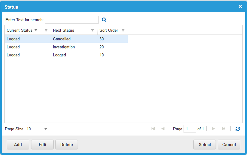 6.Click Save. All new problems now have the new status available from the drop-down list.