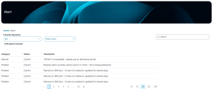 The list of alerts display showing key details such as the category, status, description.