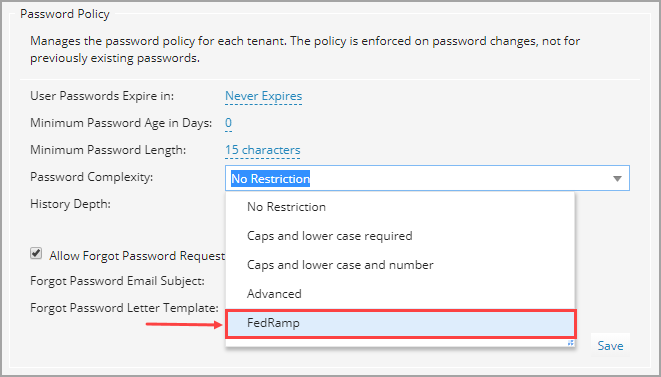 Listed below are features that are required to be FedRAMP compliant in Ivanti Neurons for ITSM