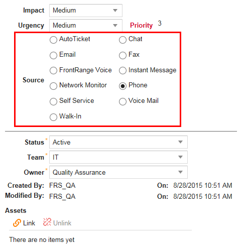 The following example shows how to change the Source field in an Incident business object.