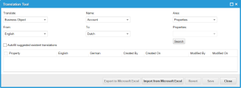 a. Click Translation Tool next to the business object to translate.