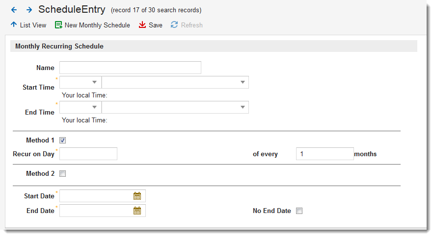 Monthly Recurring Schedule Form