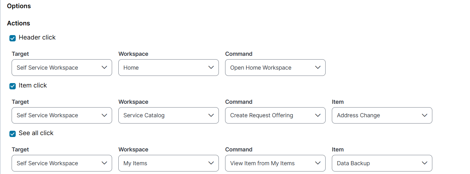 By default Favorites is disabled here, enable Favorites in the Service Catalog workspace to reflect Favorites here. For more information see Enabling or disabling the Favorites icon from the Page Designer:.