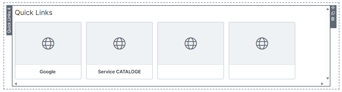 Use Quick Links to display useful links to Business Objects, workspaces or web pages. Quick Links can be displayed in your page design as lists, tiles, or a carousel.