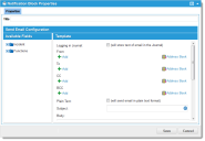 Use the Notification workflow block to define settings for emails. You can create automated messaging within the body of the email message as well as designate the recipient individuals and teams.