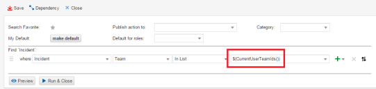 You can use this information in saved searches. The example below finds all incidents that are owned by any of the teams of which you are a member.