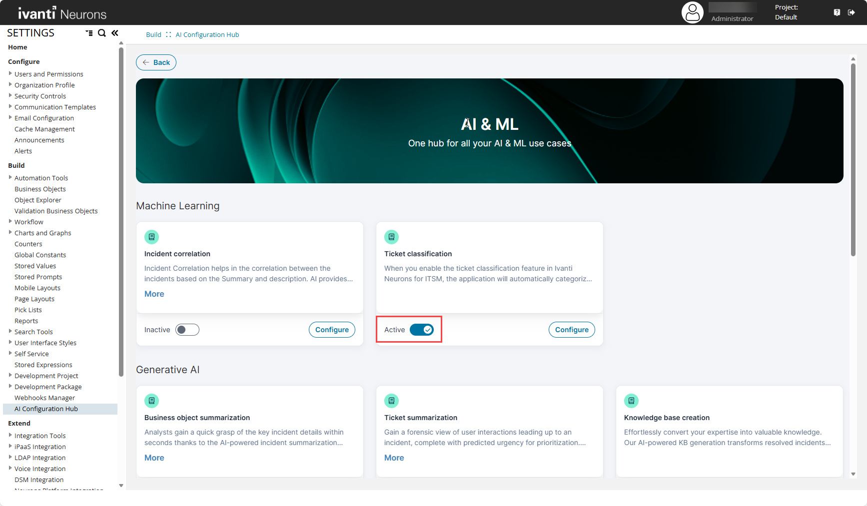 Configure Ticket Classification using Neurons for ITSM AI Services