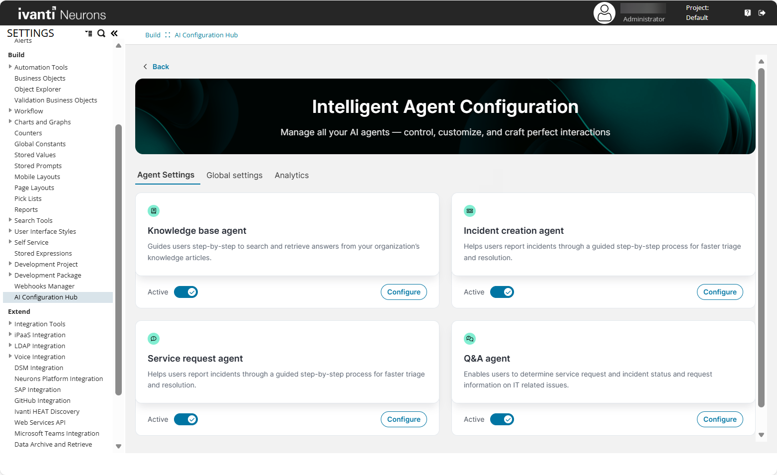 Feature Eligibility: Neurons for ITSM customers must purchase Agentic AI add-on license to use this capability. Once you purchase the license, reach out to your Ivanti Account Manager to enable the Enable_AI_Feature feature flag for you.