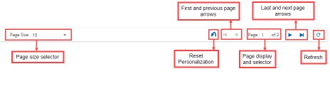 •Page size selector: Click the dropdown arrow to select the page size.