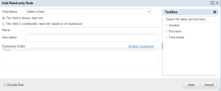 This field is conditionally read only based on an expression Specifies that the field specified by the Field Name parameter cannot be changed (that is, is read only) depending on the value of the expression.