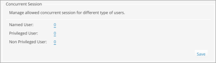 - Go to the Concurrent Session section, and enter the number of concurrent sessions for all three types of users - Named User, Privileged User, and Non Privileged User.
