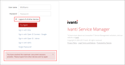 - If the option is not selected, when users reach a concurrent session limit, an error message will appear on the page, and the users will need to log out of existing sessions or devices, and then try logging in again.
