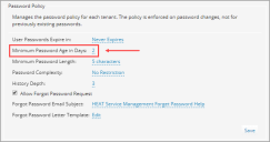 - Go to the Password Policy section, and type the desired number of days in the Minimum Password Age in Days field.